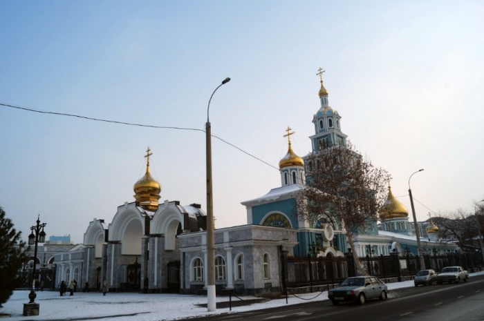 Сдаем вещи за какую-то мелочь в багаж и идем гулять на ташкентский рынок, он в 10 минутах ходьбы от вокзала, напротив собора Успения Божией Матери, в котором мы были еще утром.